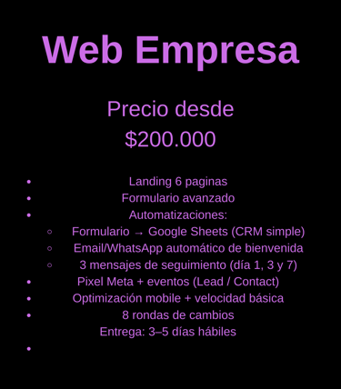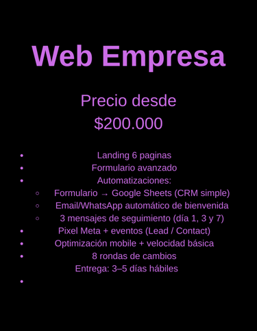 Ideal para campañas, servicios puntuales o captar clientes rápido.